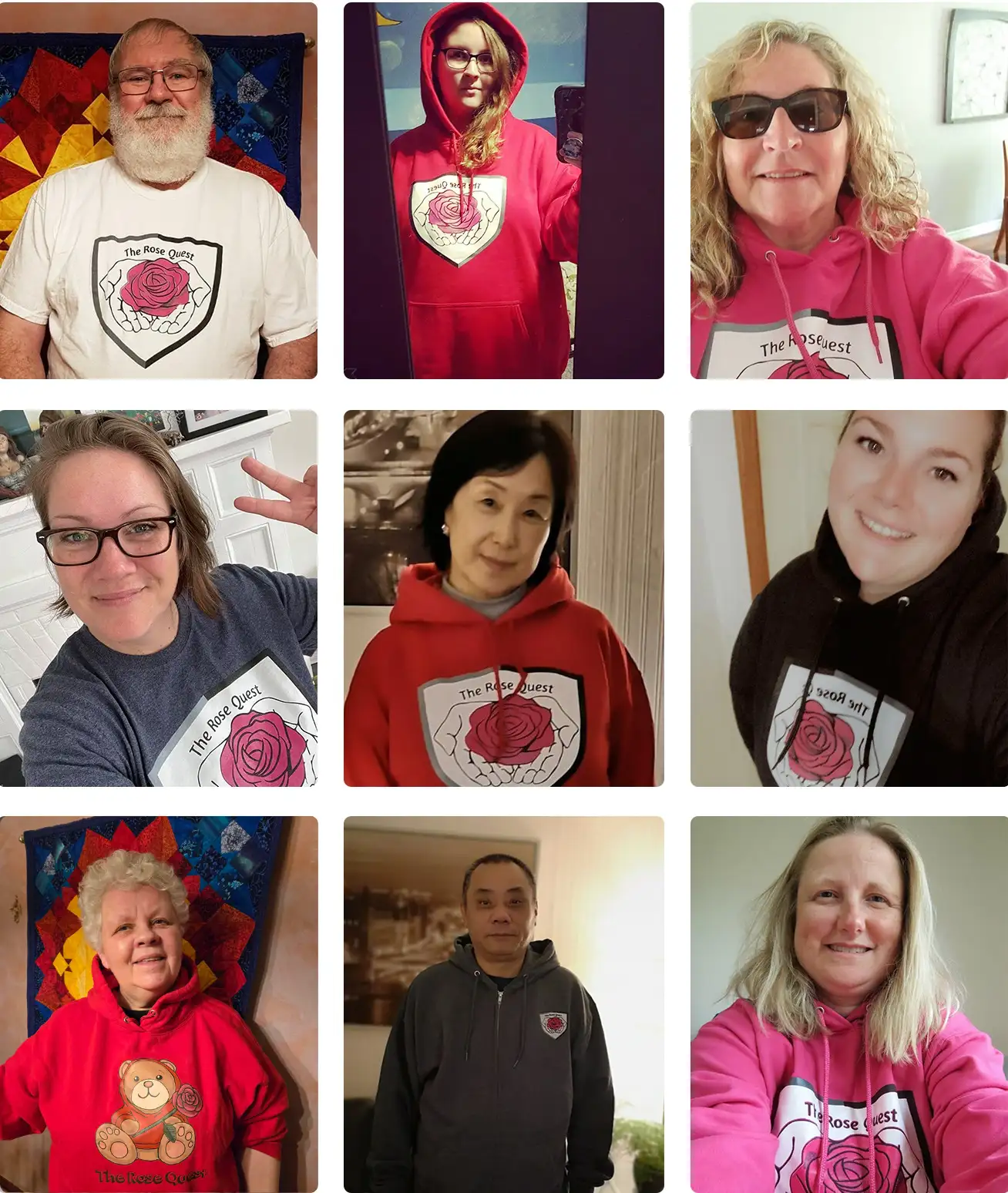 Get comfy (clothing and blankets), or helpful (masks, knapsacks, and more) merch to show off your “Rose Quest” pride with our logo on a variety of items!